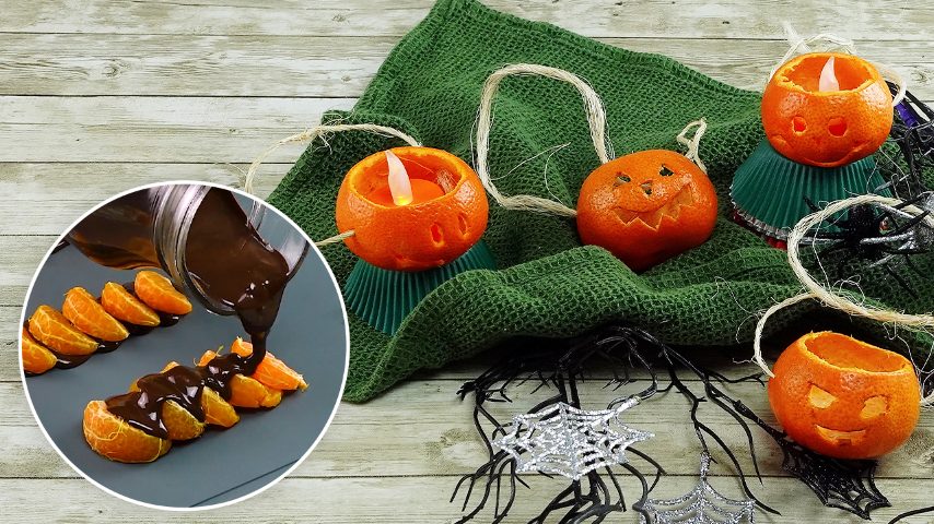 To make the Halloween decorations, the tangerine flesh is removed from the skins while keeping the skins intact. Then, you cut a jack o’lantern face into each tangerine skin before threading them with some rope which you can use to hang them. After that, to make the chocolate-covered tangerines, you pour portions of melted chocolate on a parchment-lined baking sheet or other surface before arranging tangerine segments on top and covering them with more melted chocolate to coat. Once set, you will have a healthy treat to enjoy on Halloween!