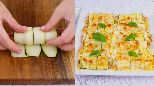 The concept of this recipe can be easily recreated by anyone. Zucchini slices act as edible wrappers for a meaty, cheesy filling, baked in a béchamel sauce, and topped with Parmesan. It’s a dish that appeals to lovers of Italian-inspired cuisine or veggie enthusiasts.