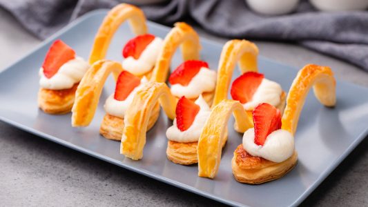 Store any unfilled pastry spoons in an airtight container at room temperature for up to two days. Keep them dry to maintain their crisp texture. If already assembled, place them in the refrigerator and consume within 24 hours. Note that the pastry may soften slightly due to the cream, but they’ll still taste great. Avoid freezing, as the taste of both the pastry and cream can change once thawed.