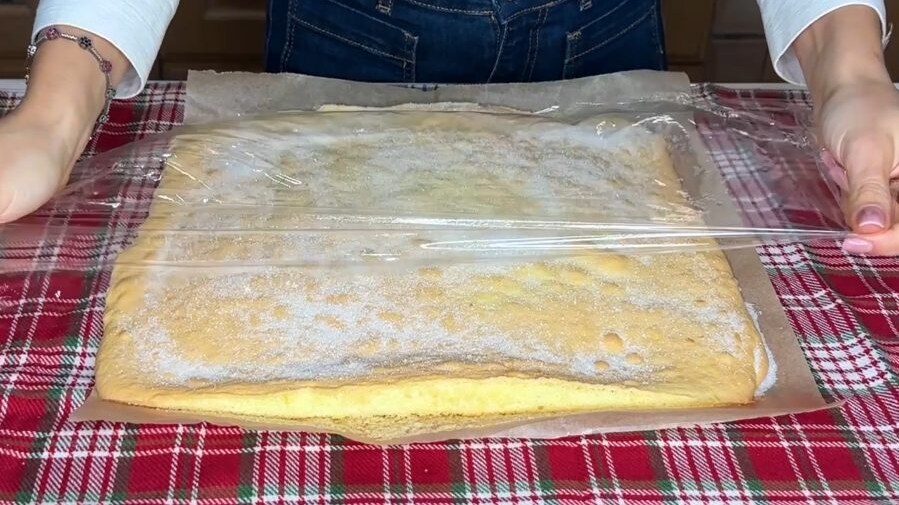 - Roll the cake gently in a clean kitchen towel or parchment paper while it's still warm to prevent cracks. Let it cool in this shape before filling.