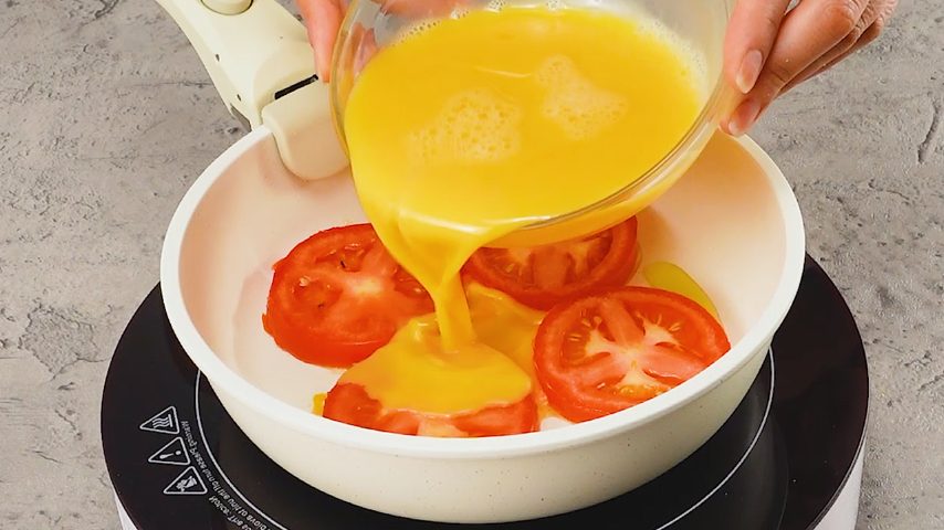 - Slice the tomato thinly so it softens quickly and doesn’t release a torrent of juice. You can also pat the slices dry to avoid soggy eggs.