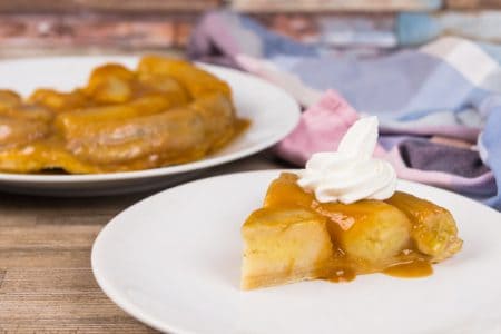 The cake is done when the puff pastry is visibly darker and firmer. It’s important for the pastry to cook all the way through. Otherwise, it won’t hold up the carmelized bananas on top.