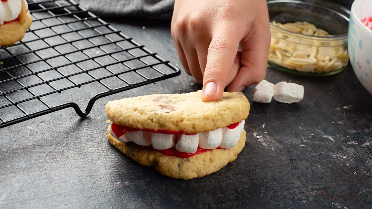 With chewy yet crisp buttery cookies, creamy vanilla frosting, and fluffy marshmallows, each bite is devilishly good. Use store-bought cookie dough or make your own to prepare your vampire cookies for a frighteningly easy dessert to add to your Halloween spread.