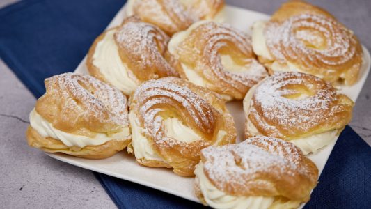 Choux pastry, or pâte à choux, traces its roots back to France, where it became the backbone of classics like éclairs and profiteroles. Unlike most doughs, this one starts on the stovetop, with flour stirred into hot liquid and butter, before eggs are added. The word “choux” means cabbage in French, a nod to the round, slightly crinkled shape of the baked pastry.