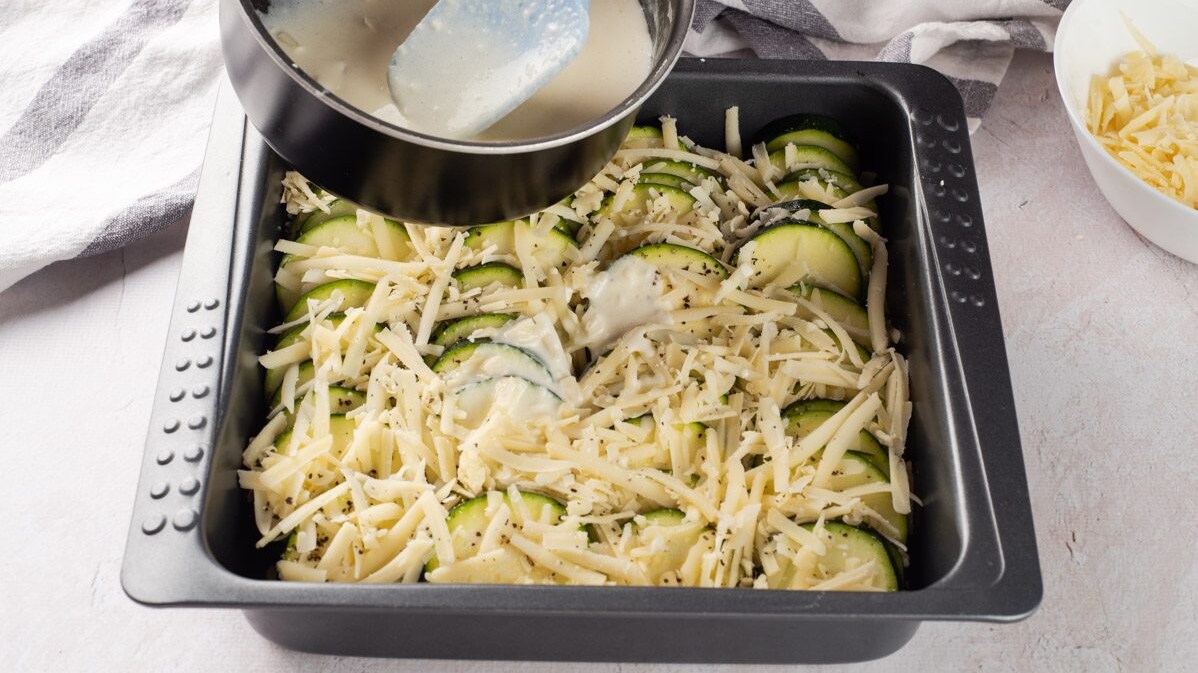 Add a bit of crunch to your zucchini gratin by topping the casserole with panko, breadcrumbs, potato chips, cornflakes, or crushed pork rinds.